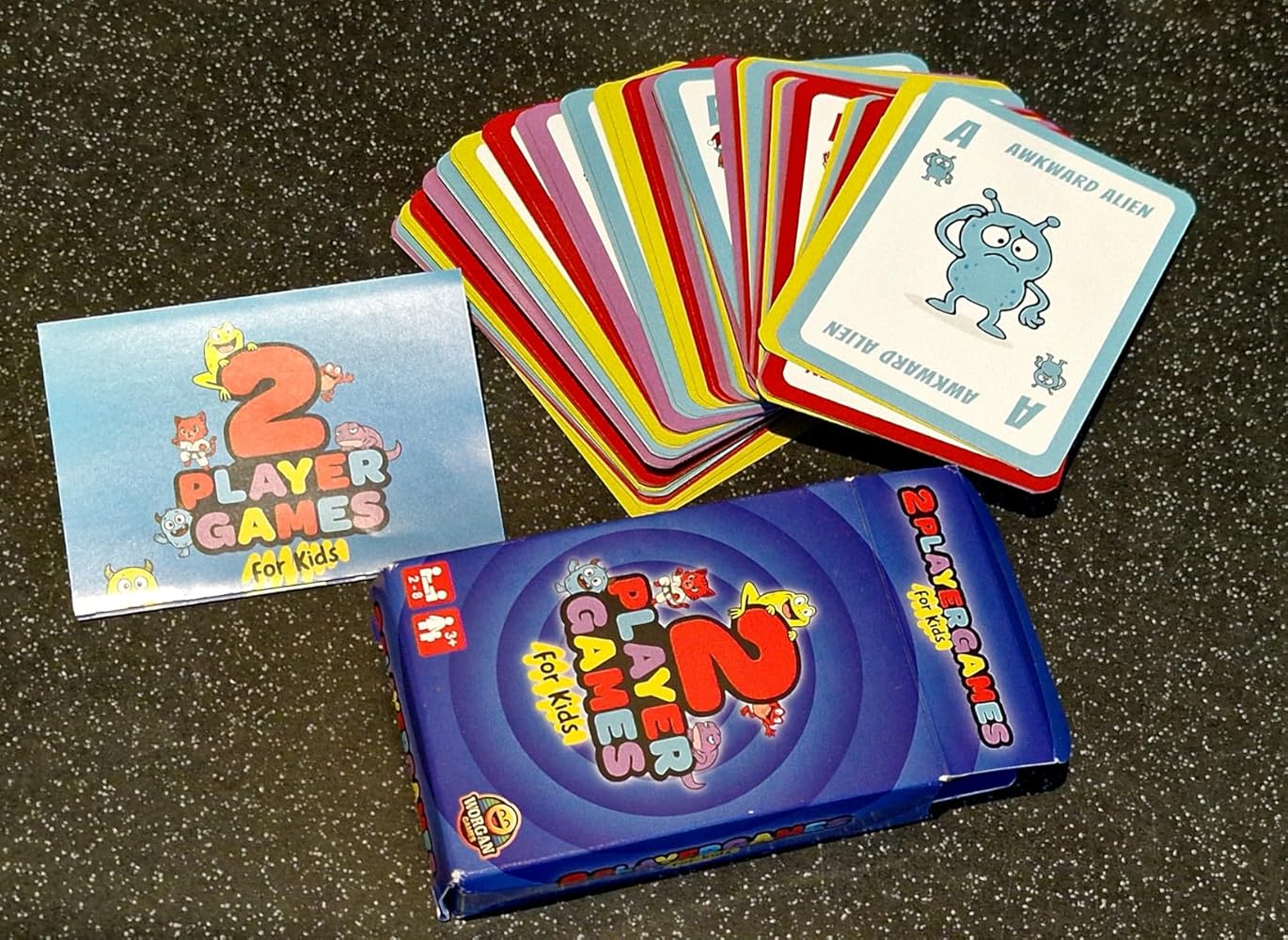Some nice bright cards a good quality deck with simple two player game instructions. The cards are not thin or jagged edges like you can get on some cards from cutting machines. They look really well made. I also personally like that the deck is not too tight in the box meaning children can tip them out and put them in easier reducing the chances of the box being ripped. Easy to take around with them and good fun to play with the family.